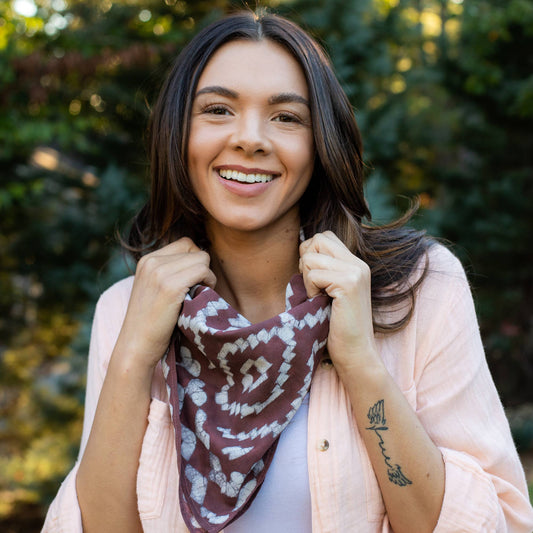 ANJU Block Printed Bandana - Chocolate Brown Batik Print
