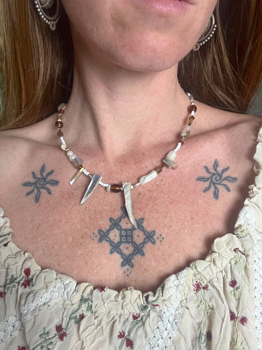BEADED SUNRAYS Mother Of Pearl Necklace 18 Inch