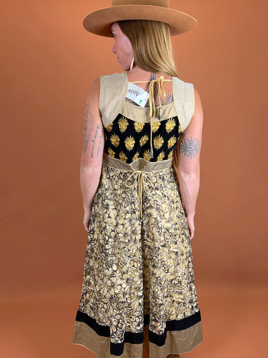 ANJU Block Printed Bandana - Golden Mustard Floral Vines Print