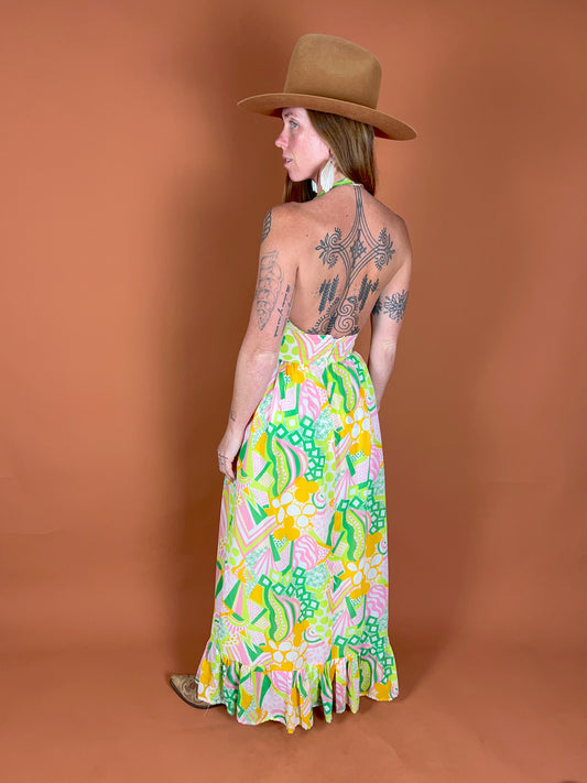 VINTAGE 60's Halter Neck Maxi Dress 6