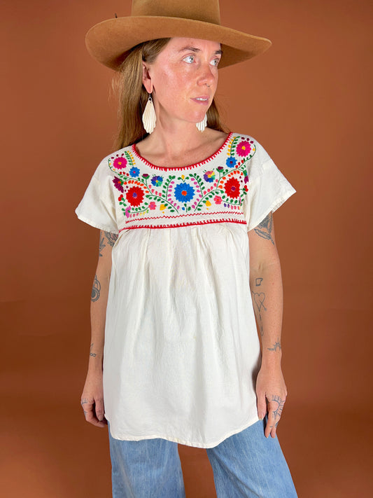 VINTAGE 70's Mexican Embroidered Blouse 12