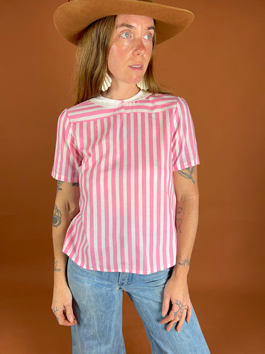 VINTAGE 70's Candy Stripe Blouse 10-12