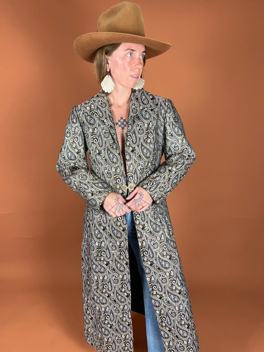 VINTAGE 80's Lurex Brocade Trench Coat 10-12
