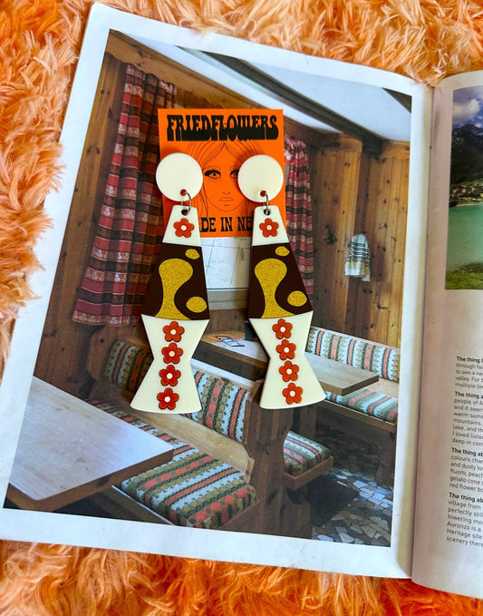 FRIED FLOWERS Trippy Retro Flower Power Lava Lamp Earrings: Tangerine