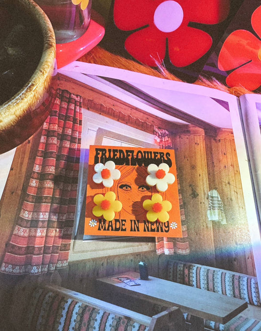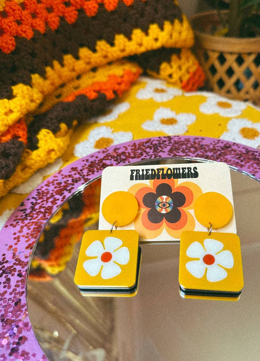 FRIED FLOWERS Little Layla Retro 1970s Inspired Flower Earrings: Yellow