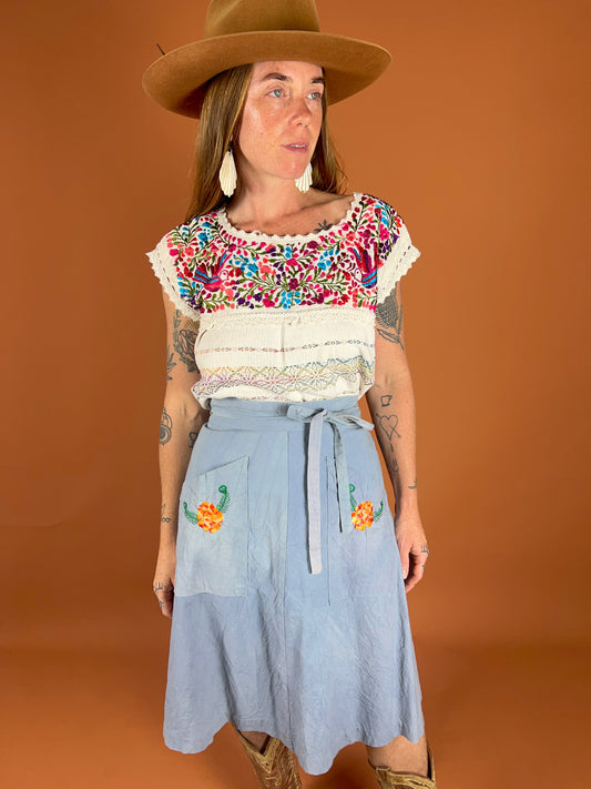 VINTAGE 70's Embroidered Wrap Skirt 6-10