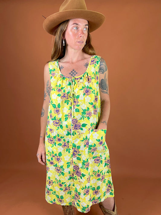 VINTAGE 70's Cotton Maxi Dress 14-16