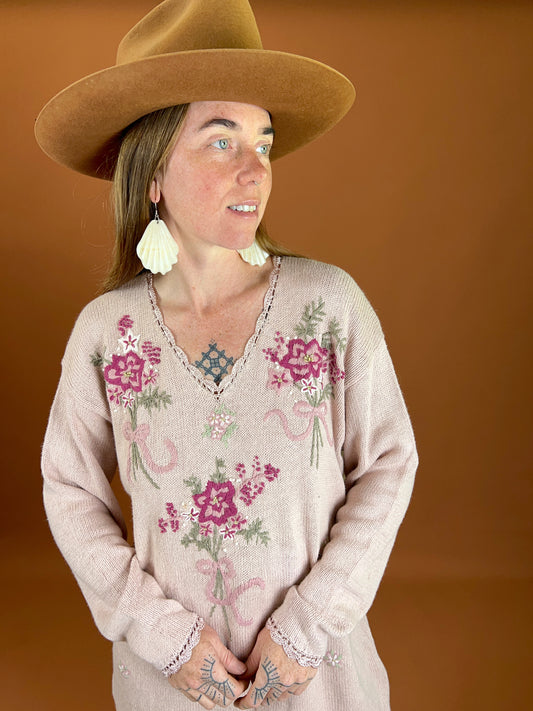 VINTAGE 80's Pastel Pink Cotton Knit Jumper 10-12
