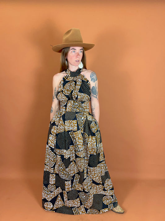 VINTAGE 80's High Neck Cotton Maxi Dress 10-12