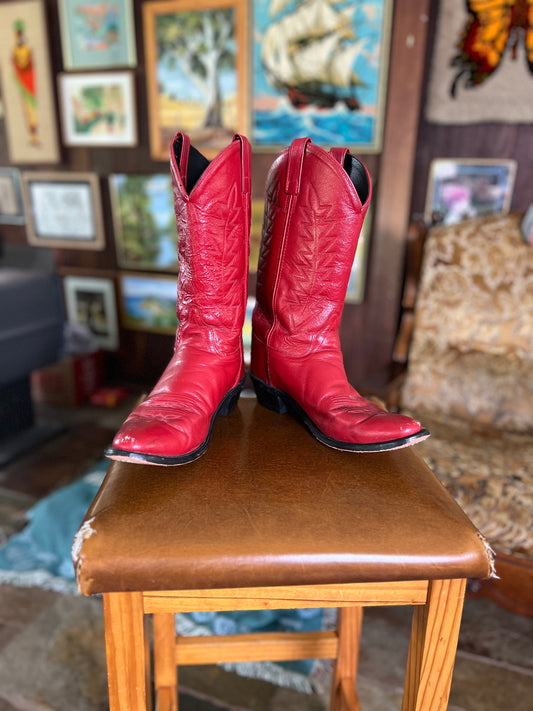 VINTAGE 80's Red Leather Cowboy Boots 9.5-10/40-40.5