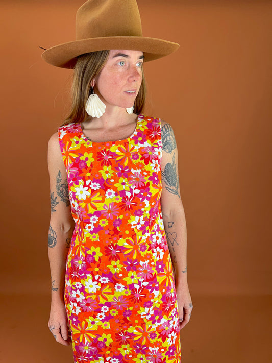 VINTAGE 60's Floral Cotton Mini Go Go Dress 8-10