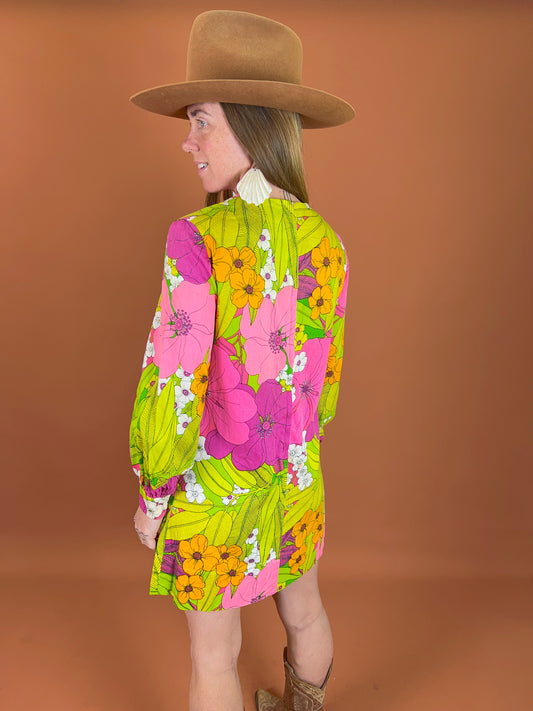 VINTAGE 80's/90's Floral Cotton Mini Dress 10