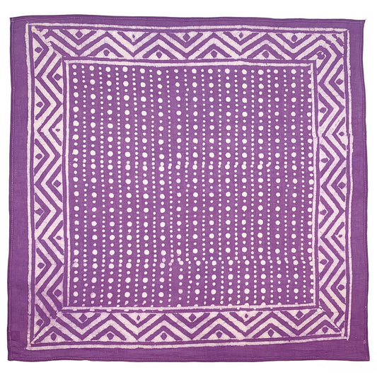ANJU JEWELLERY Block Printed Bandana - Purple Dots with Chevron Border