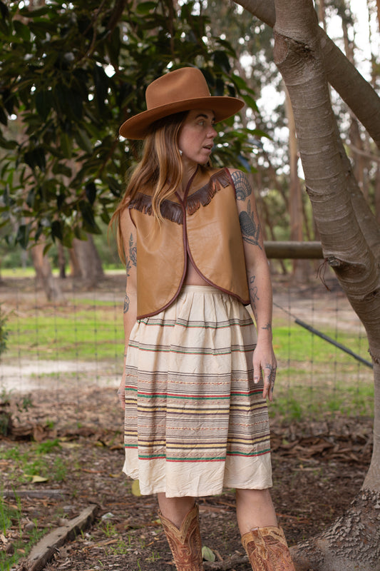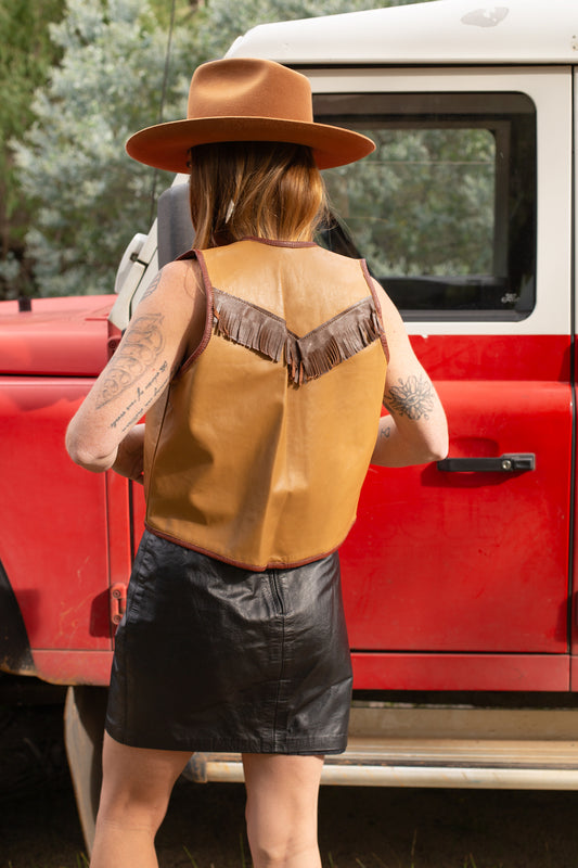 VTG 60's/70's Leather Two Tone Tassel Vest 10-12