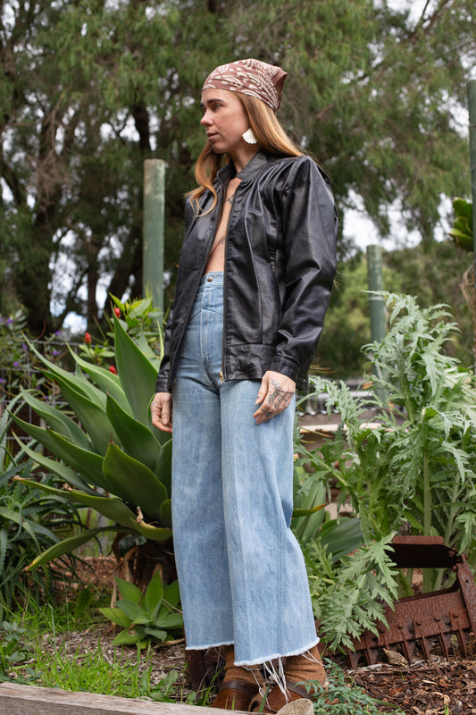 VTG 80’s Pleated Bomber Leather Jacket 10-12