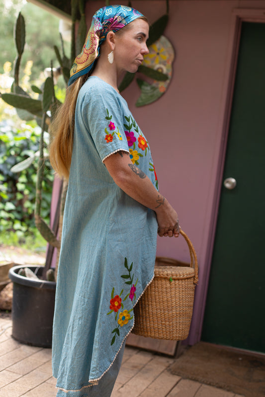 VTG 80's/90's Embroidered Linen Dress 10-12