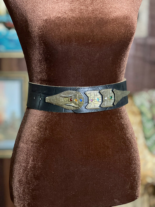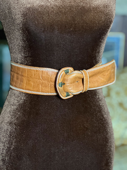 VTG 60’s Crocodile Buckle Leather Belt OS