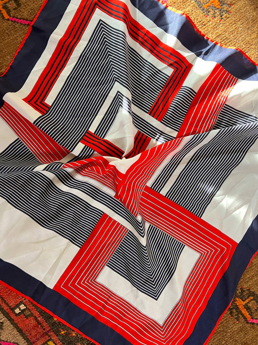 ANJU JEWELLERY Block Printed Bandana - Rust Orange Zigzag Lines and Waves