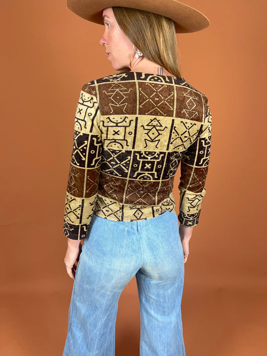 VINTAGE 80's/90's Aztec Velvet Long Sleeve Top 8
