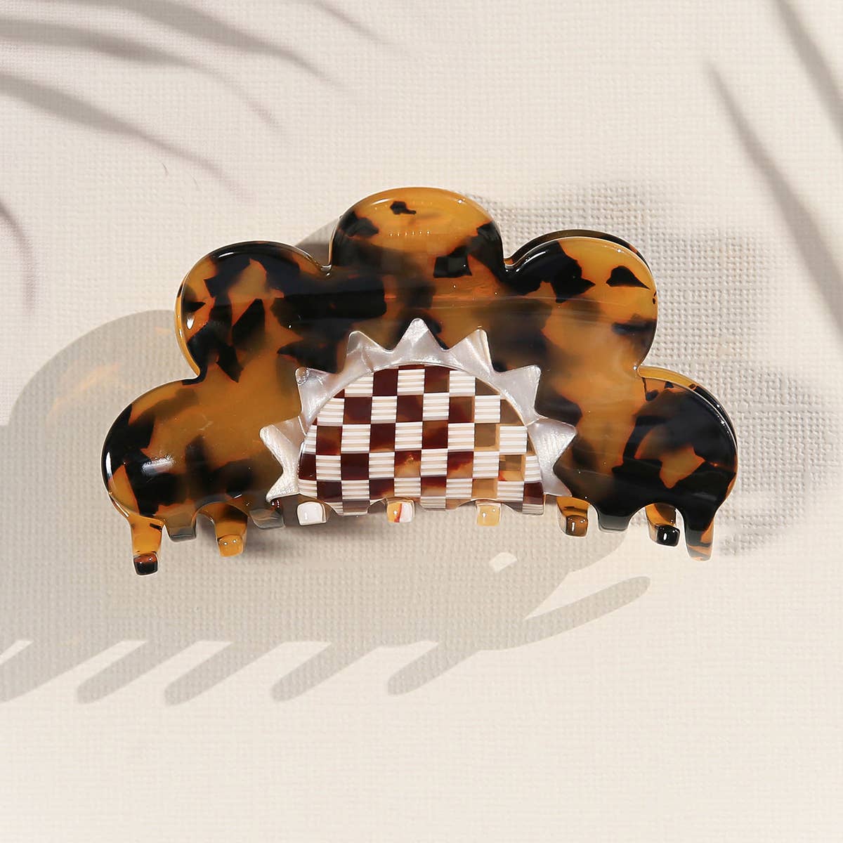 Each hair claw and clip is designed by Jemima Kingston in her Australian studio. Produced overseas, they primarily use plant-based biodegradable acetate blended with traditional acetate, accented with pearls, paint details, and metal elements. Measuring 9cm in width and 4.5cm in height, they carry a unique bohemian spirit.