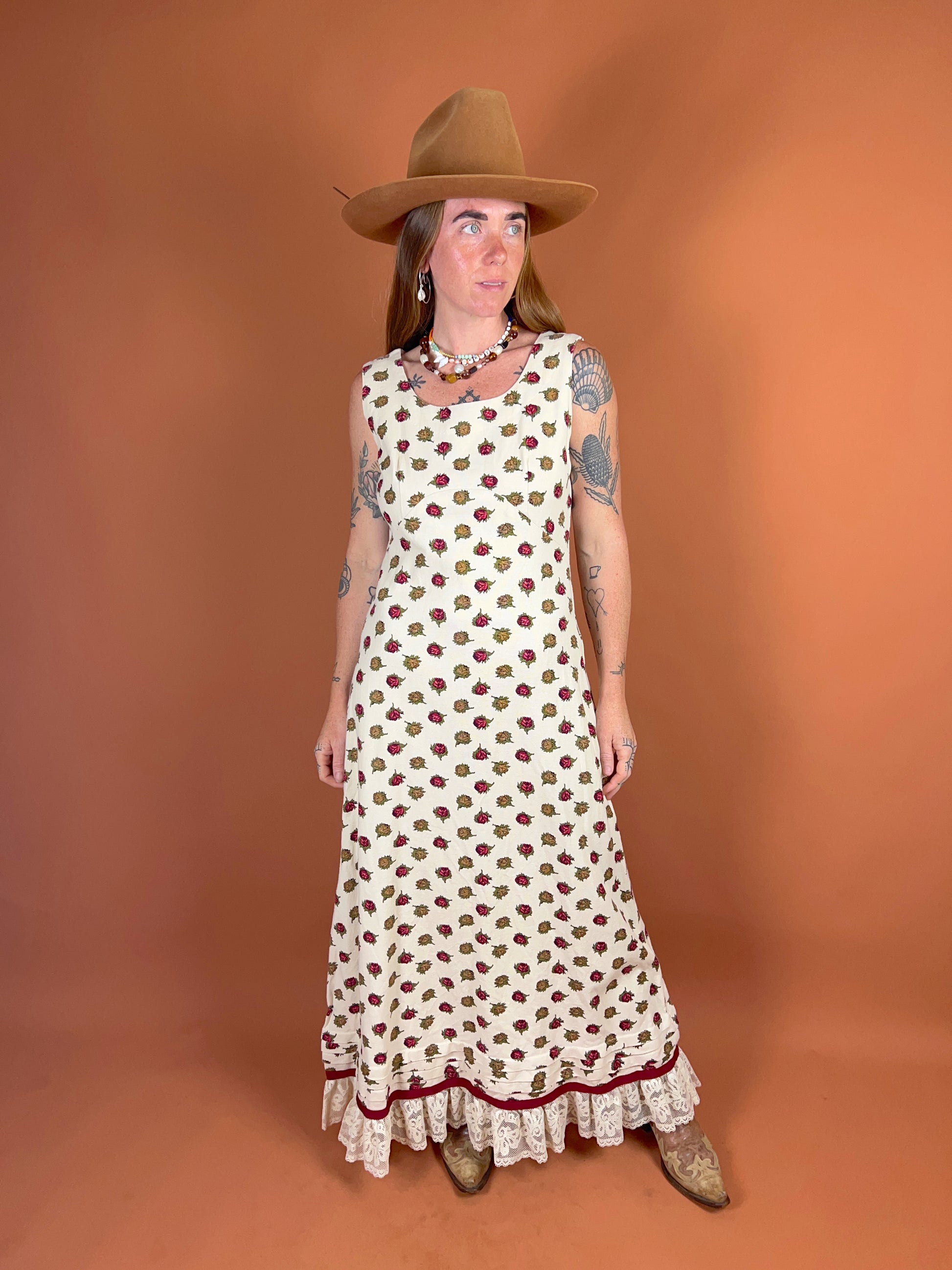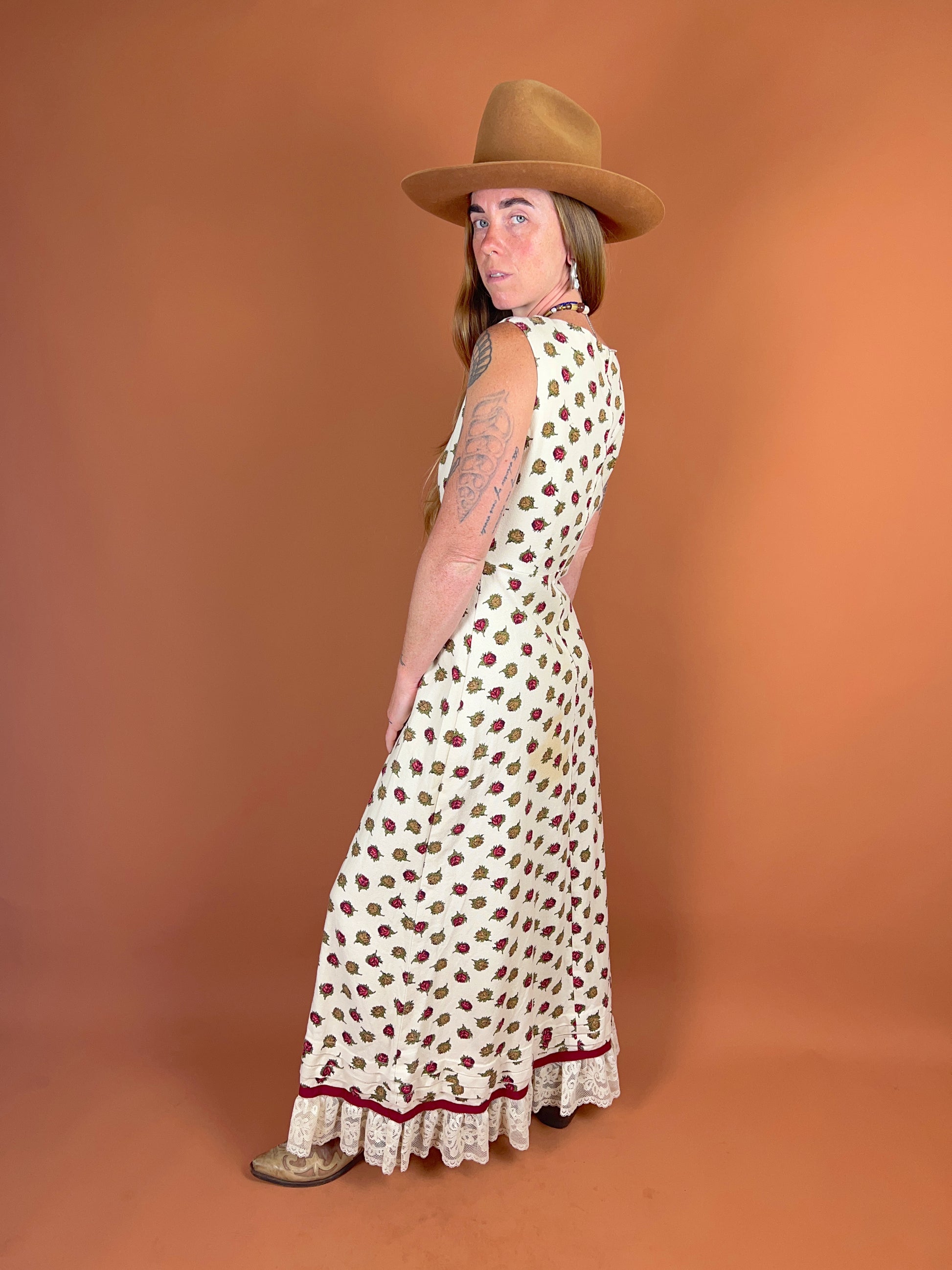 VINTAGE 60’s Handmade Cotton Linen Floral Maxi Dress 10