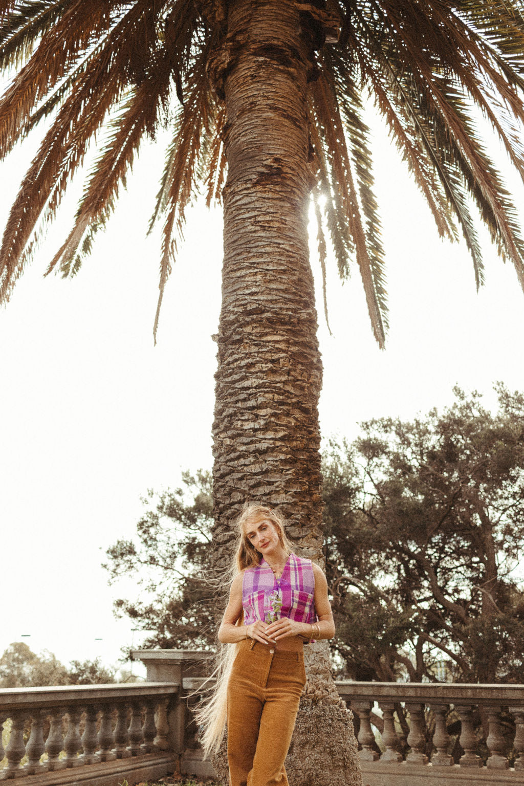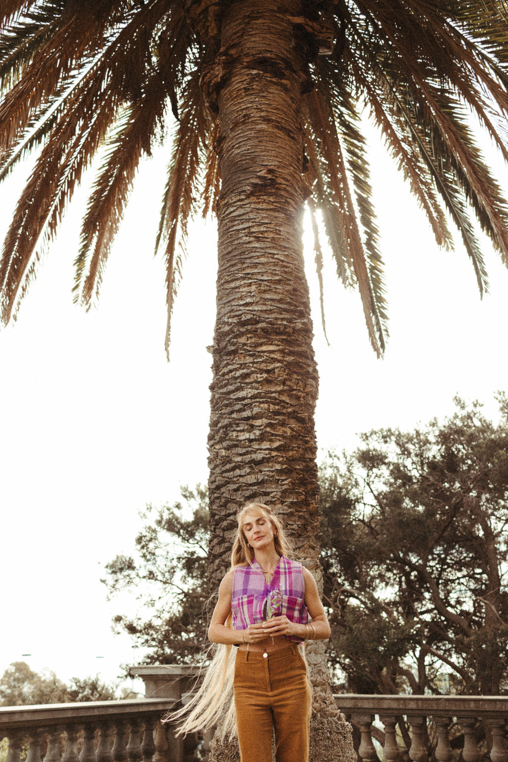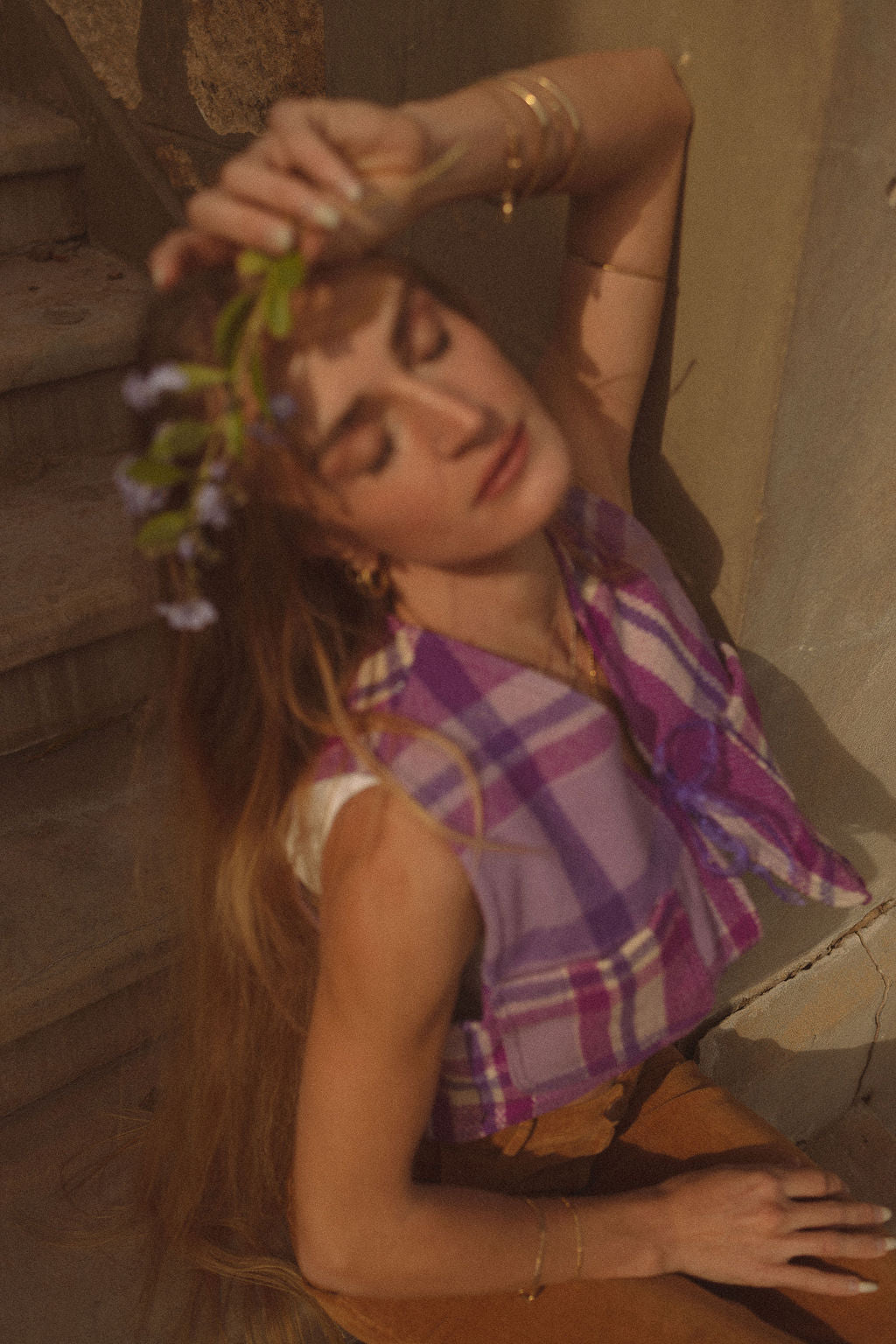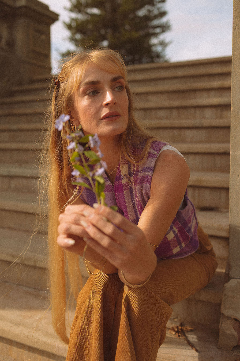 The SECOND SHINE SLOW FASHION Reversible Vintage Wool Blanket & Floral Flannel Sheet Vest in size 12 offers a versatile bohemian layer. Crafted from up-cycled vintage wool blankets and floral flannel sheets, this reversible vest combines warmth with delicate patterns, perfect for adding sustainable style and cozy comfort to your wardrobe. Tie front.