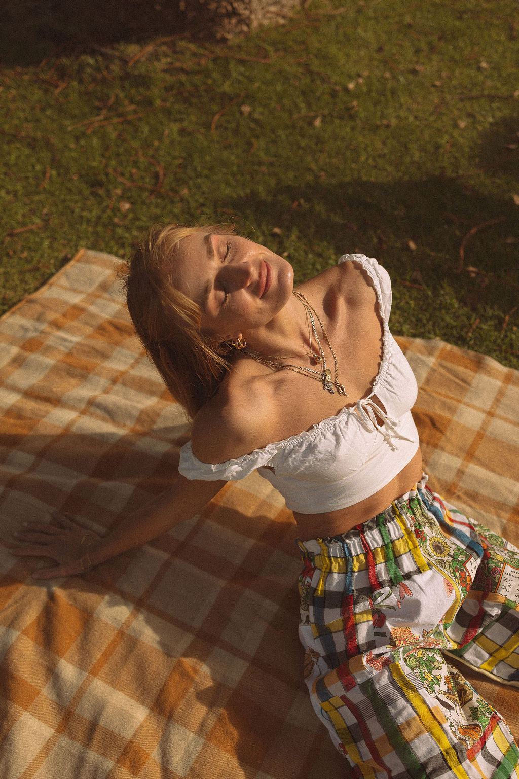 Celebrate sustainable style with the SECOND SHINE SLOW FASHION Vintage Check Tablecloth & Tea Towel Patchwork Pants, sized 6-10. These bohemian-inspired pants feature a unique patchwork of vintage check tablecloths and tea towels, offering a comfortable fit and vibrant, one-of-a-kind design. Perfect for those who love eco-friendly fashion with a creative twist. Elastic waist.