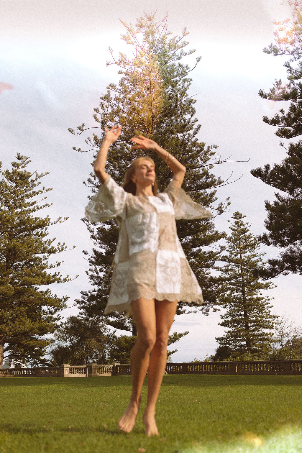 Experience timeless bohemian beauty with the SECOND SHINE SLOW FASHION Vintage Linen & Lace Tablecloth Dress in a free size up to a 16. Crafted from up-cycled vintage linen and delicate lace tablecloths, this dress offers a flowing, comfortable fit and a unique blend of textures that celebrate sustainable, artisanal fashion. Perfect for those who cherish individuality and eco-conscious style.