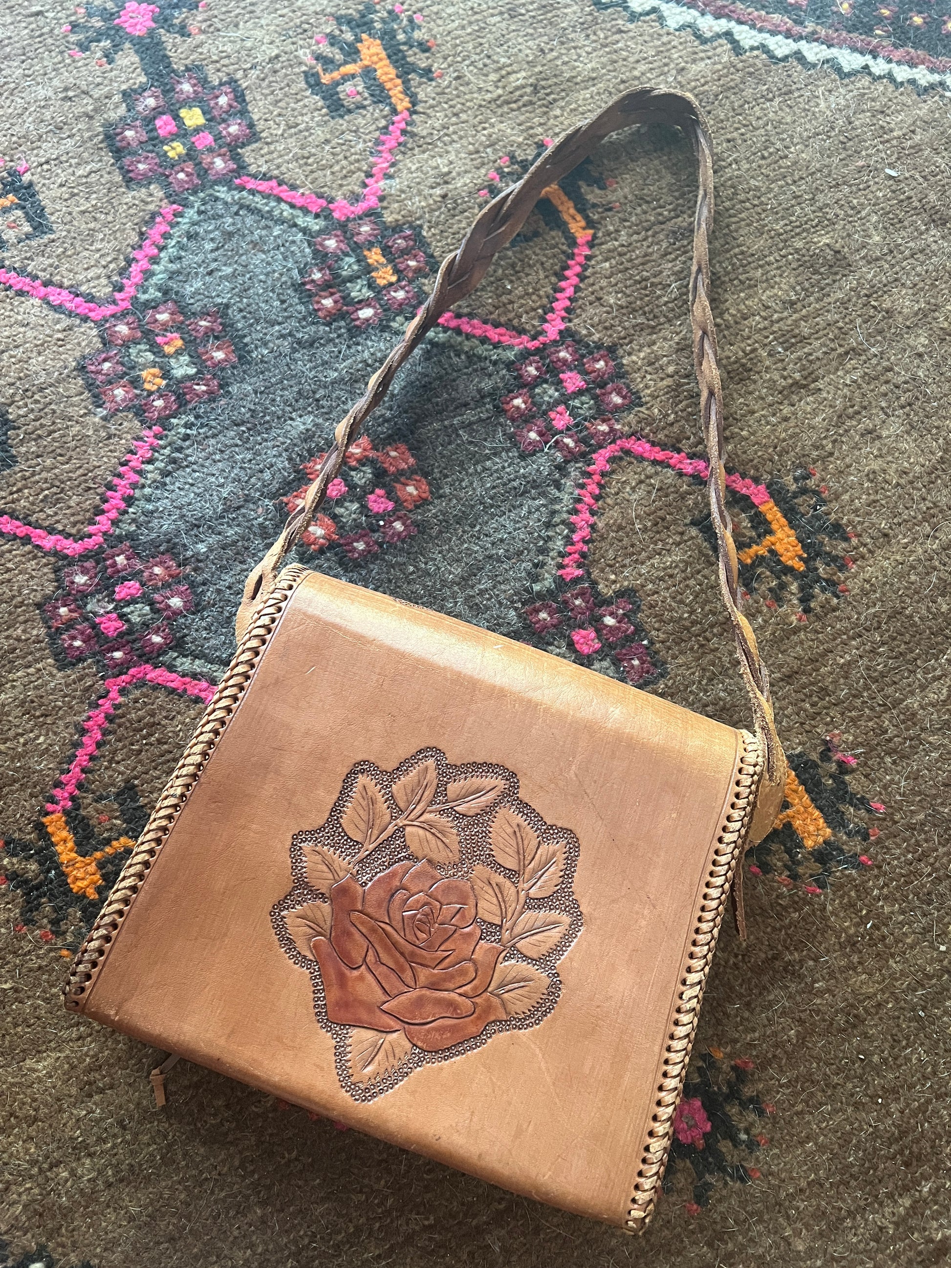 VINTAGE 70's Leather Tooled Bag