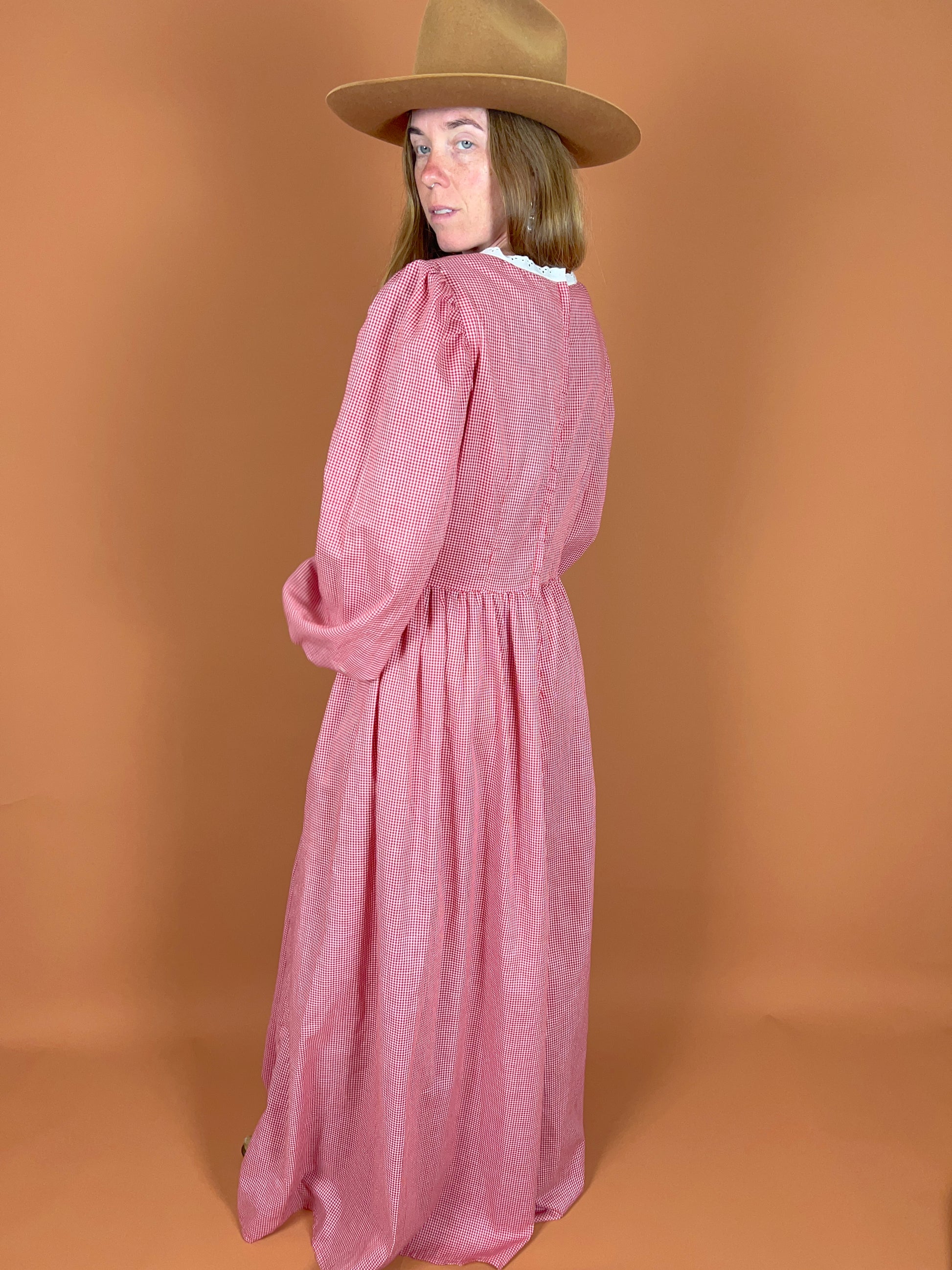 60's red and white gingham maxi dress.