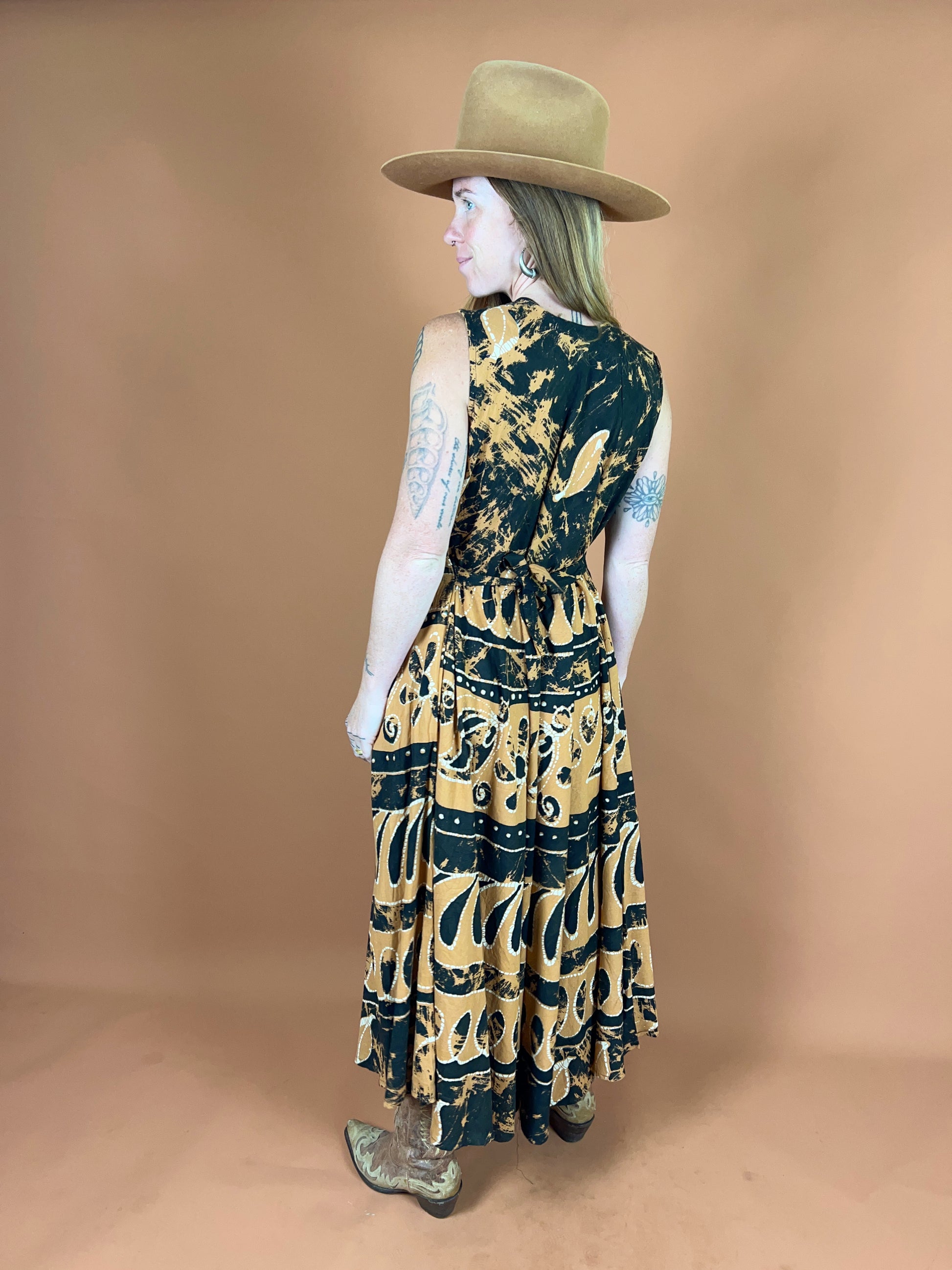 Step into the groovy spirit of the '70s with this enchanting paisley print maxi dress. Crafted for sizes 14-16, this vintage beauty features flowing fabric and mesmerizing swirling patterns that capture the free-spirited essence of the era. Perfect for festival season, bohemian gatherings, or anyone seeking to channel retro glamour with effortless style. The relaxed silhouette and rich colour palette make it a versatile wardrobe staple that pairs beautifully with vintage jewellery and worn-in boots. A timeless piece that celebrates the artistic soul of vintage fashion.