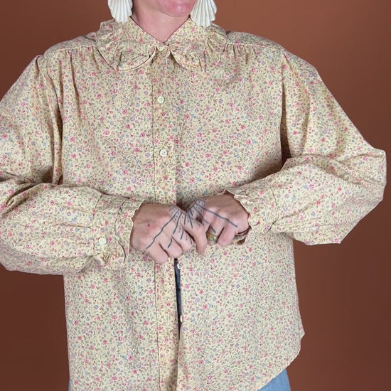 Vintage 60's floral button down shirt with beautiful collar detailing.