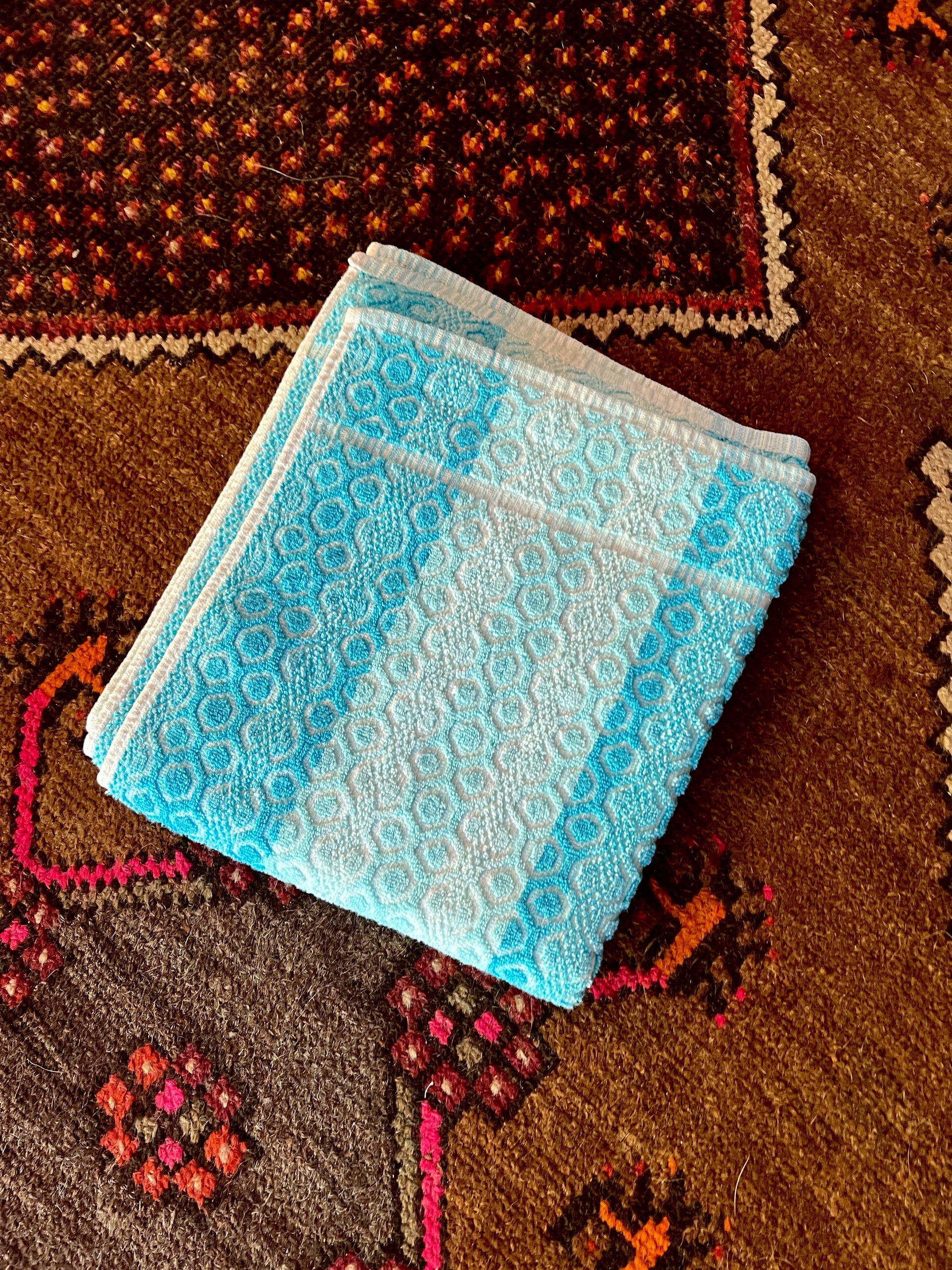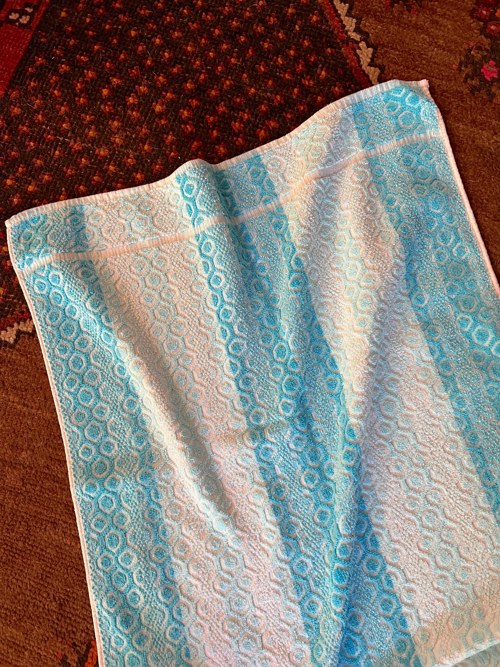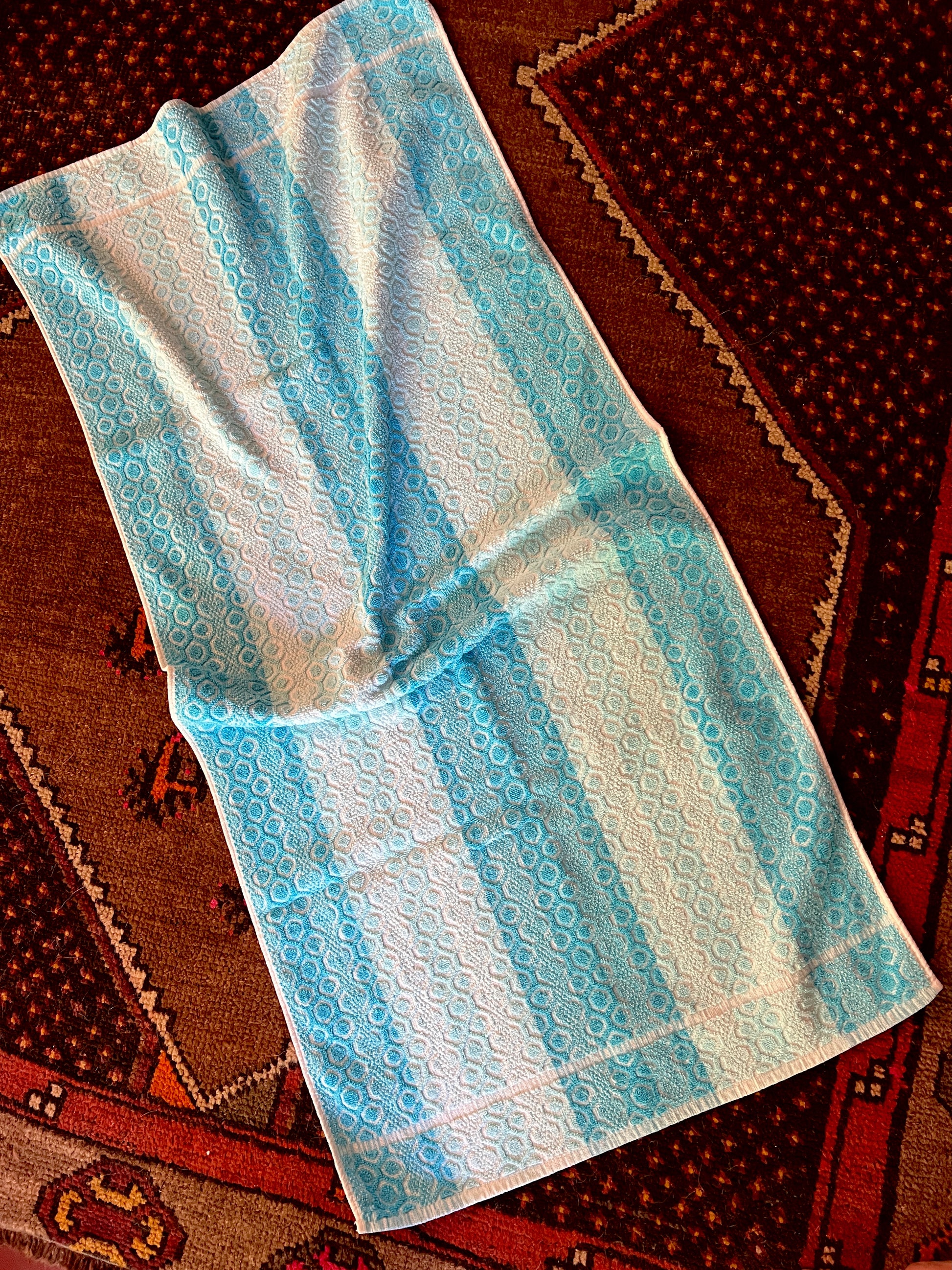 Vintage 70s blue and white stripe towel.