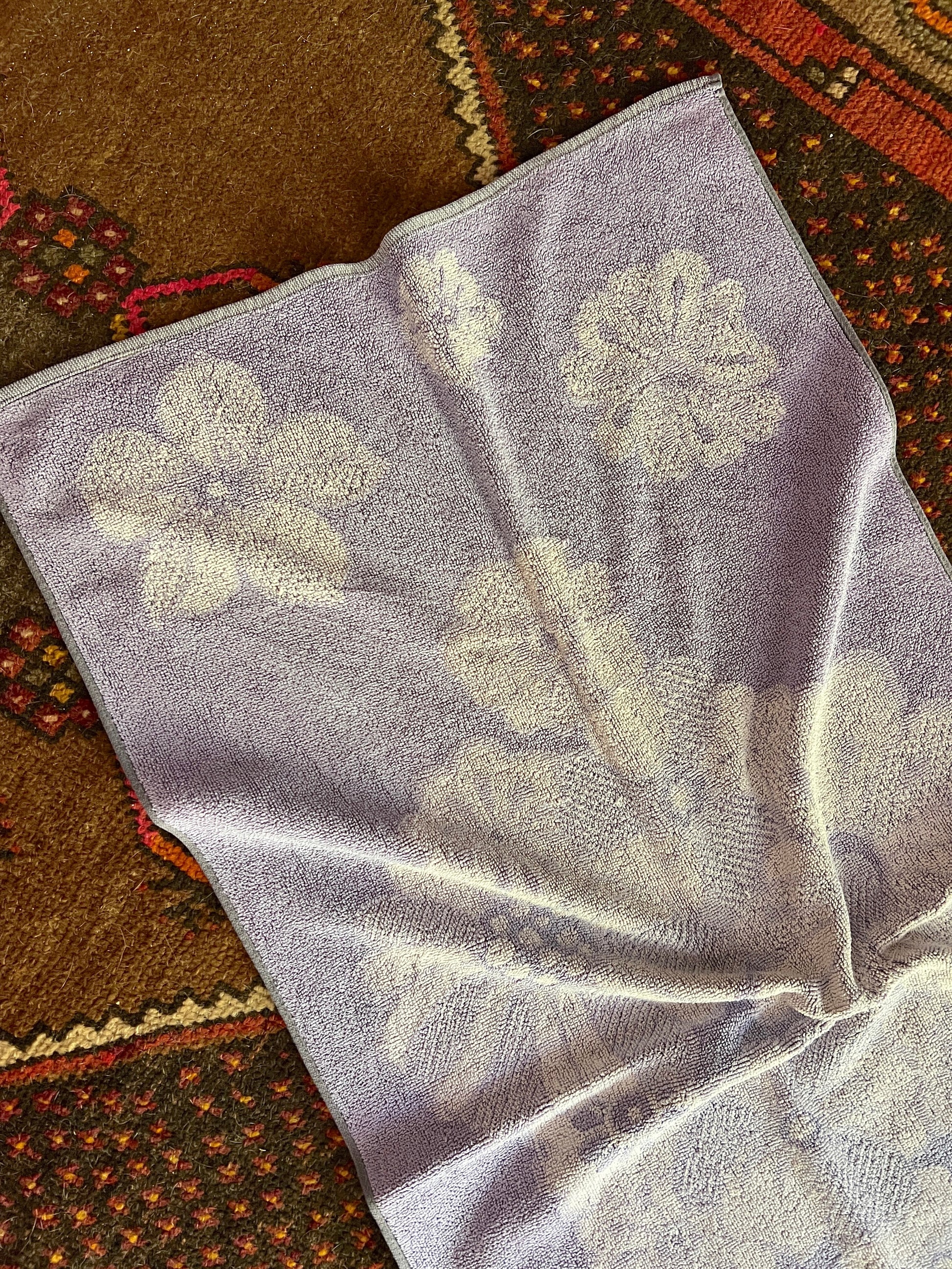 60s pastel purple floral towel.