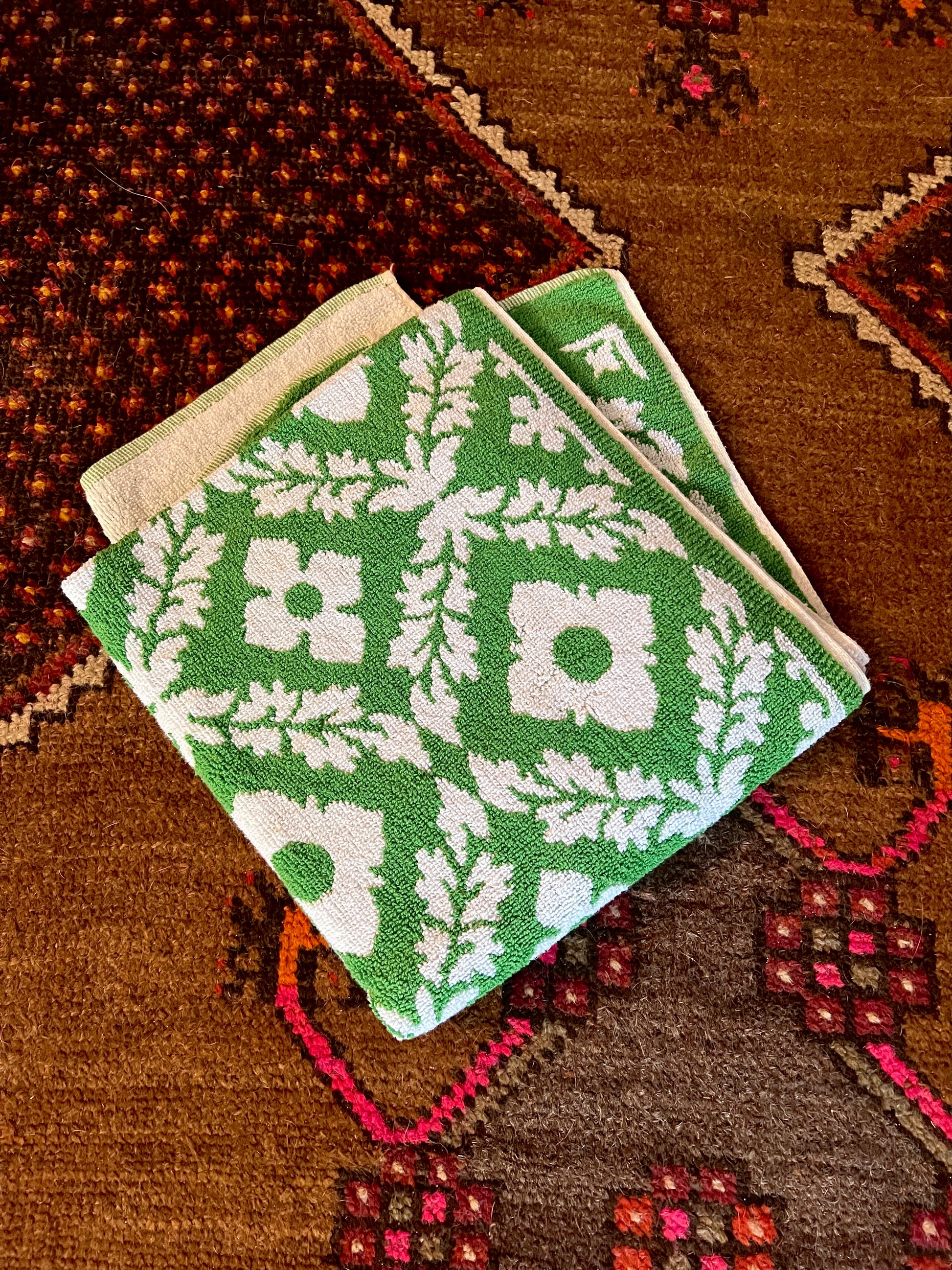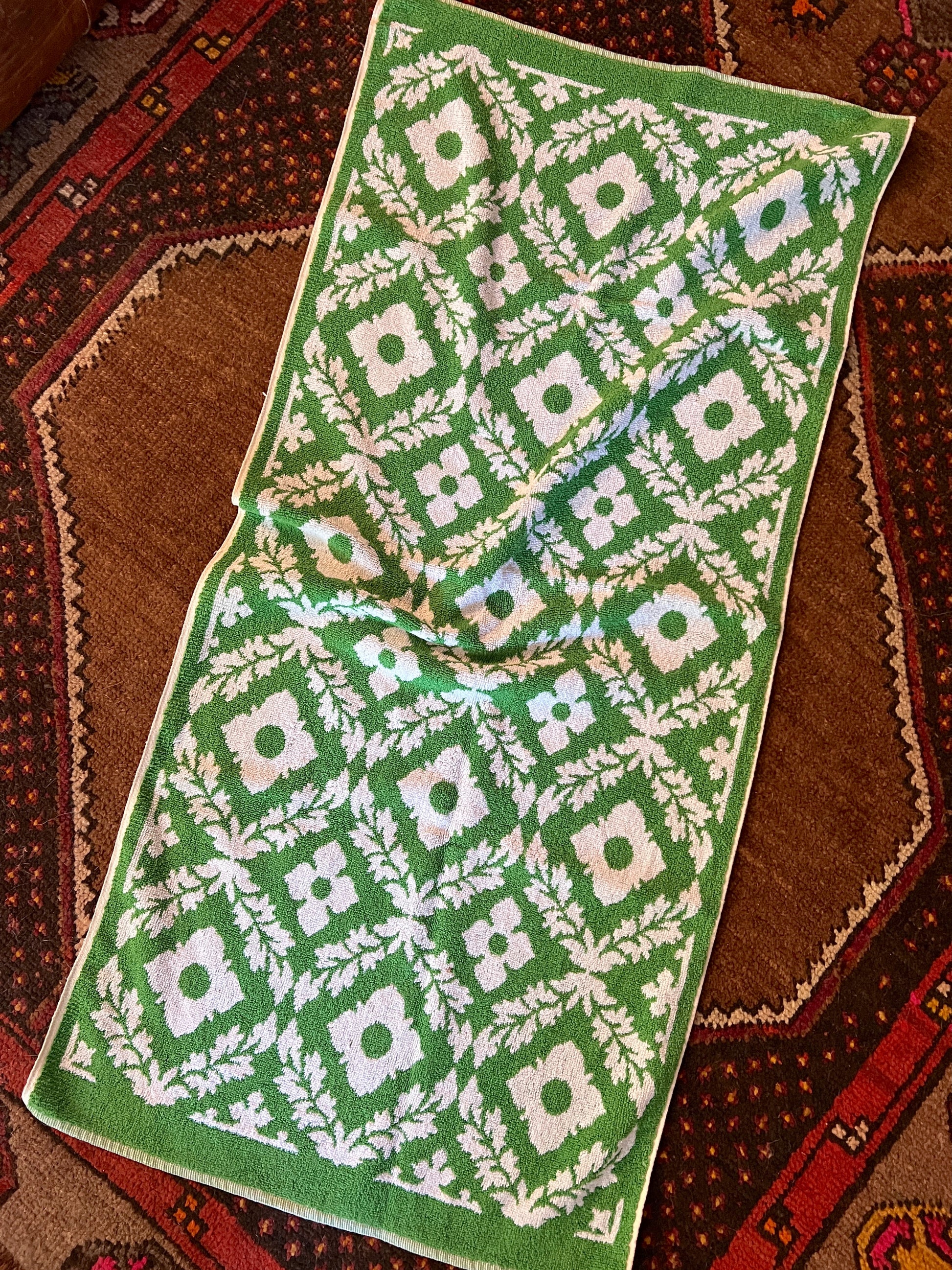 VINTAGE 60's Floral Green Towel