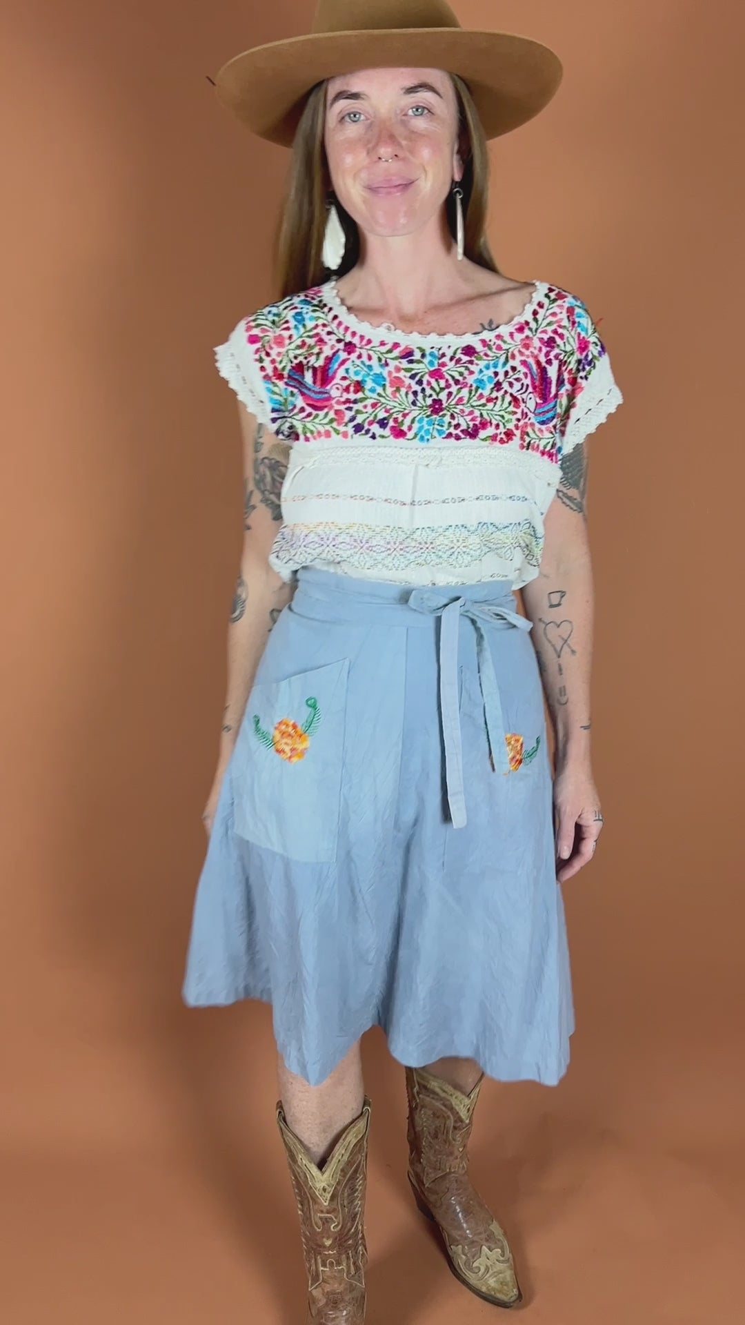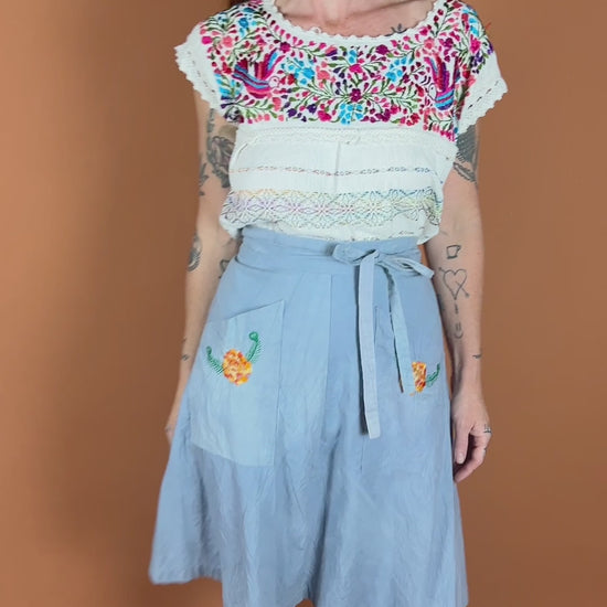 Vintage 70's handmade cotton embroidered wrap skirt.