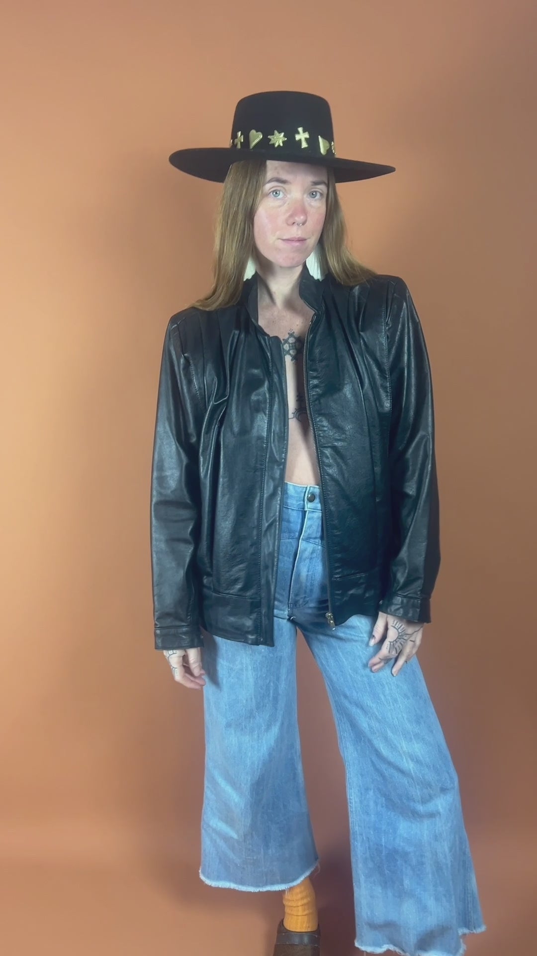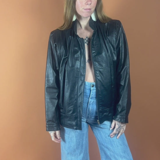 VINTAGE 80’s Pleated Bomber Leather Jacket 10-12