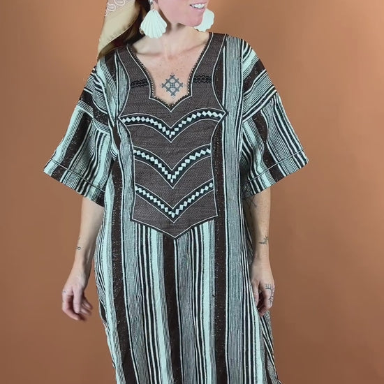 VINTAGE 60's/70's Heavy Woven Embroidered Lurex Maxi Dress 14-16
