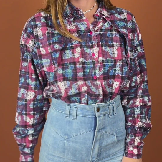 70's/80's Western Style Cotton Plaid Print Shirt.