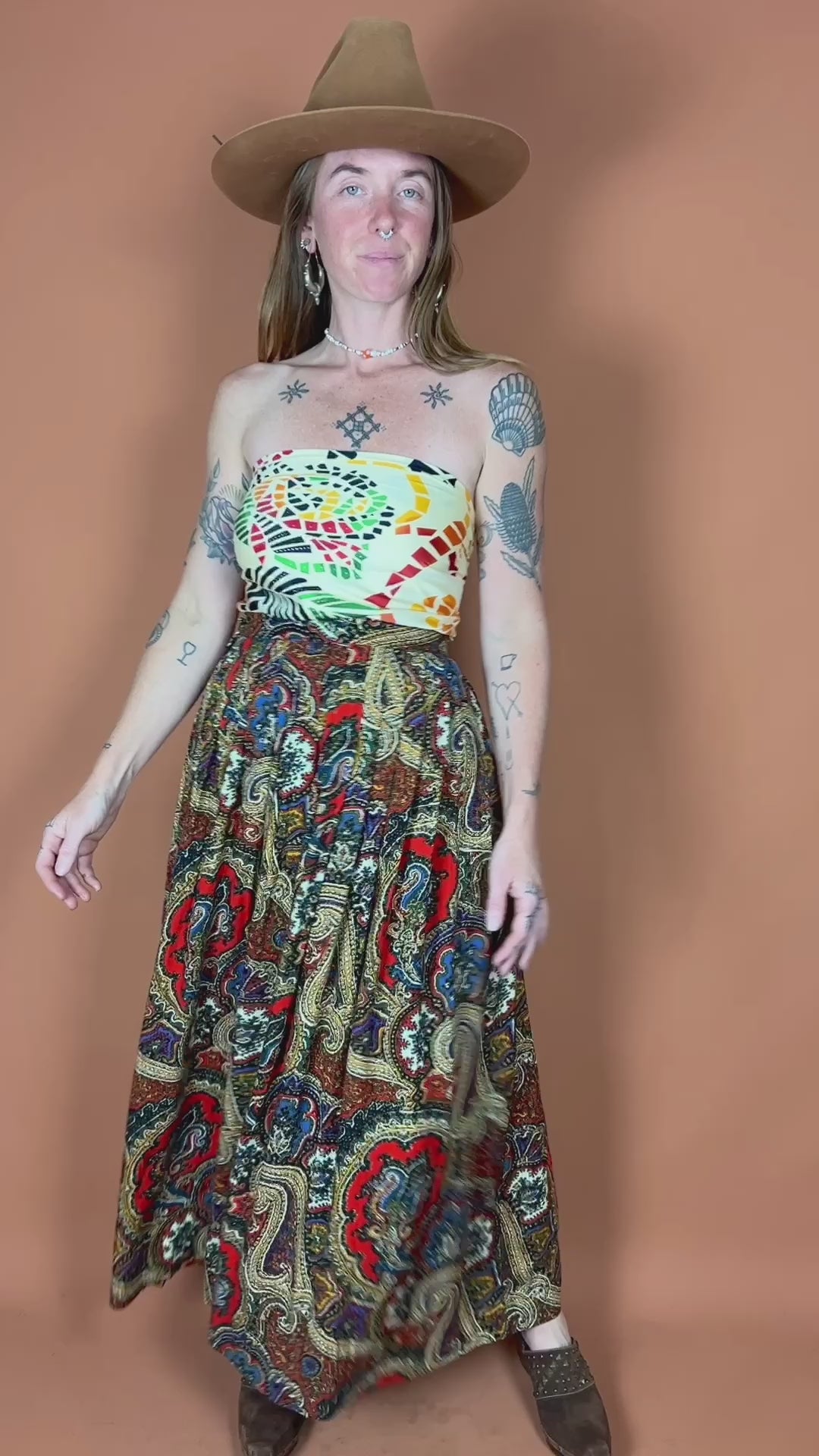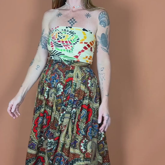 80's/90's Paisley Floral Pleated Maxi Skirt.